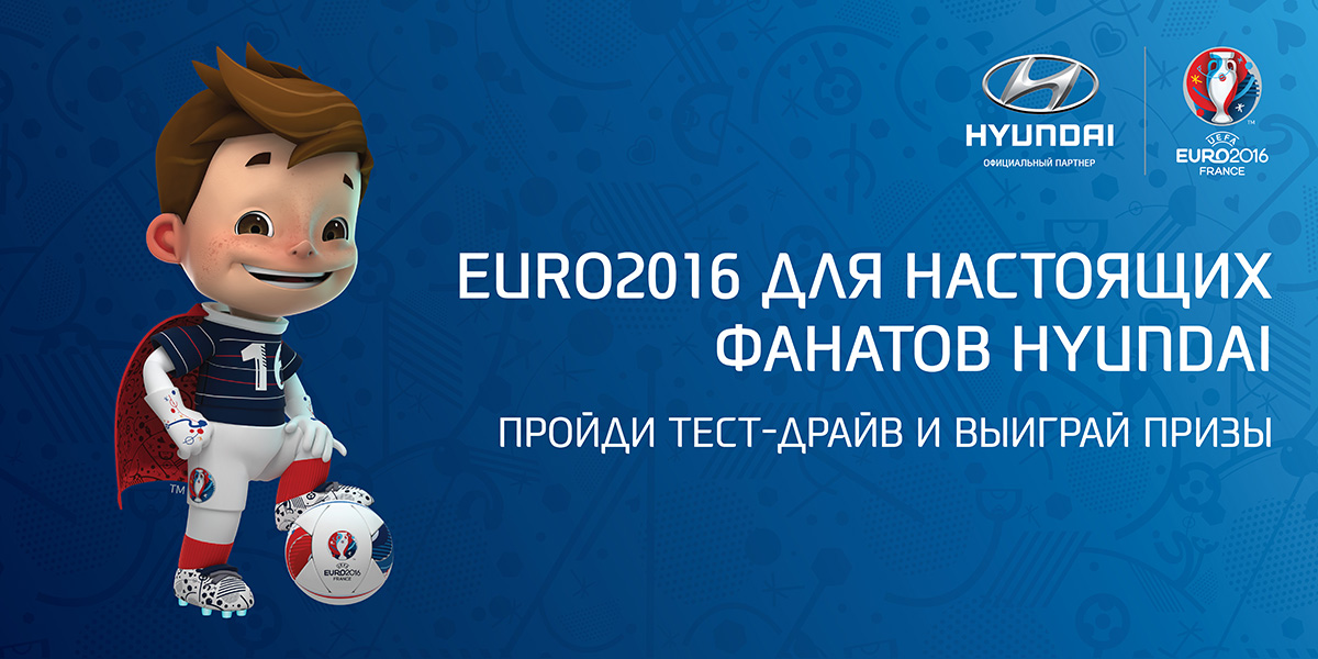 Компания Hyundai Motor является официальным спонсором Чемпионата Европы, который состоится с 10 июня по 10 июля 2016 года. Спонсорство футбольных мероприятий – одно из главных направлений глобальной стратегии Hyundai по развитию спорта на протяжении нескольких лет.